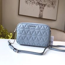 MK包包官网 迈克科尔斯三角刺绣原单小羊皮链条斜挎小方包23CM 浅蓝色