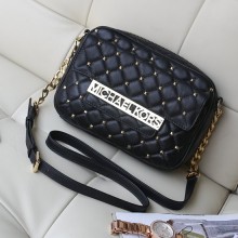 MK女包价格 迈克科尔斯专柜最新款 黑色羊皮铆钉链条单肩包小号18cm