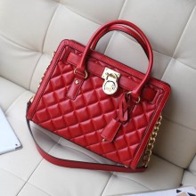 厂家直销 MK新款进口顶级羊皮菱格锁头包 高档女士手提单肩包 红色