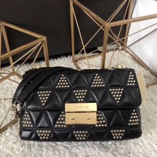 厂家直销 MK迈克高仕黑色三角羊皮刺绣镶钉链条单肩女包 金色五金
