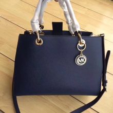 迈克高仕女包 MK原单十字纹牛皮中号戴妃包玳瑁包包32cm 深蓝色