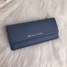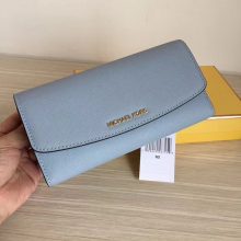 迈克科尔斯钱包 MK浅蓝色原单十字纹牛皮三折信封长款钱夹手包20cm