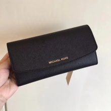 MK新款钱夹 迈克高仕十字纹牛皮翻盖长款钱包19cm 黑色